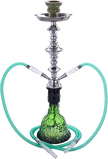 CHAMP Al Malik - Belle Chicha - Narguilé - Hookah - 55 cm - Livrée avec Foyer en céramique, Deux tuyaux en Plastique et Pince - Verre - Vert