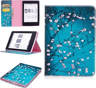 JCTek Étui de protection à rabat en cuir synthétique pour Kindle Paperwhite 10 génération -2018, 6 inch, Fleurs de prunier, 1