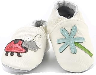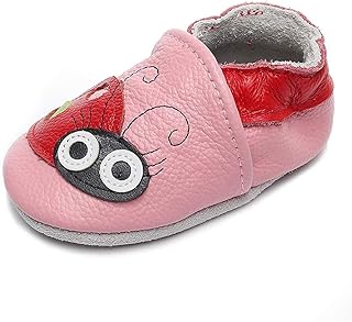 Chaussures Enfant Bébé en Cuir Souple Premiers Pas Souple Bébé Fille Chaussures Bébé Garçon,6-12 mois,Coccinelle et Fleur