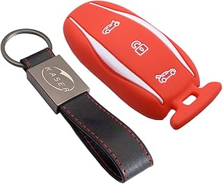 Housse étui en Silicone pour Clé Tesla – Coque Cover Porte-Clés pour Tesla Model X S Protection Télécommande Voiture (Rouge)