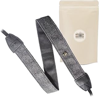 CLG Sangle pour Appareil Photo Classique Grise Courroie de Cou dragonn réglable en néoprène pour DSLR Canon Fuji Fujifilm Leica Nikon Pentax Olympus Sony Panasonic Pentax Samsung Sigma