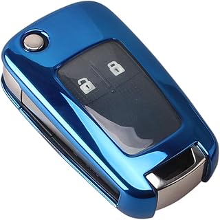 ontto Coque de clé de Voiture Pour Chevrolet Cruze Camaro Aveo Opel Adam Astra Insignia Corsa Cascada Étui Cas pour télécommande de clé voiture en Cuir Protection de clé avec porte-clés 3 Boutons-Bleu