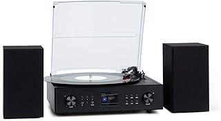 AUNA Connect Vinyl Radio Internet avec Platine, 40 W Max, Stéréo : 2 Haut-parleurs Inclus, Radio Internet, Dab/Dab+; Radio FM, Plateau tournant : 33/45 / 78, Bluetooth, Noir