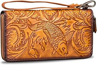 Portefeuille en Cuir véritable pour Femme avec Fermeture éclair Autour du Poignet, Long Sac à Main Vintage en Cuir de Vachette gaufré