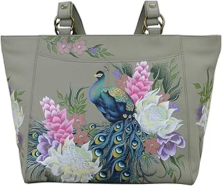 Sac de travail classique en cuir véritable pour femme - Extérieur peint à la main