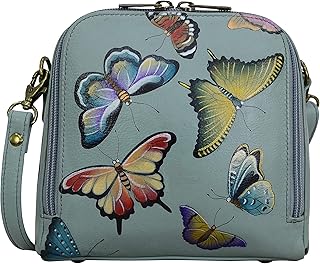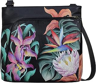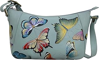 Sac à bandoulière en cuir véritable pour femme avec fermeture éclair sur le devant – Extérieur peint à la main