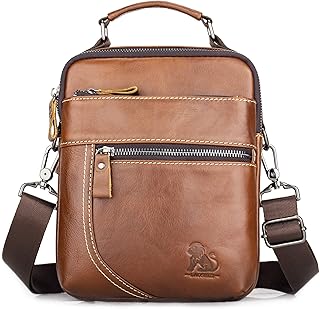 Sac à Bandoulière à Fermeture Eclair Complet Sacoche Homme en Cuir Véritable Sac à Main Vintage