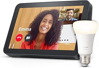 Echo Show 8, Tissu anthracite + Philips Hue Ampoule Connectée White (E27), compatible avec Bluetooth et Zigbee (aucun hub requis)