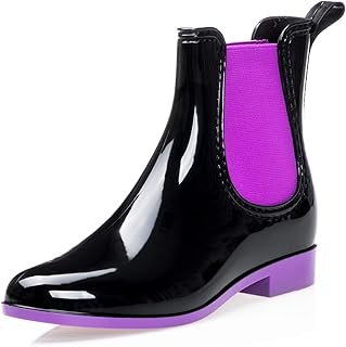 Bottes de Pluie Femme Caoutchouc Chelsea Bottine Femme Talon Eté Noir Violet