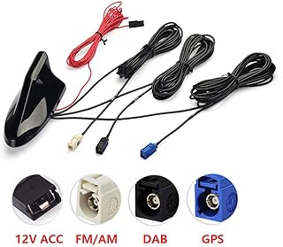 Eightwood Antenne Dab Antenne FM Antenne Voiture Adaptateur Antenne Autoradio Fakra AM/FM Antenne GPS Toit Amplificateur Signal Antenne à aileron de Requin Extension Câble RG174 500cm