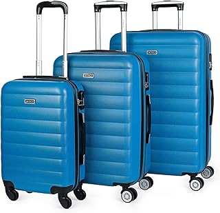 Set de 3 Valises de Voyage Rigides 4 Roues Trolley ABS. Extensibles Résistantes et Légères. Poignée 2 Anses et Cadenas. Petite Moyenne et Grande. 71200, Color Bleu Cyan