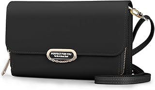 Sac Bandoulière Femme, Femmes Portefeuille Sacs pour Téléphone Moderne Cuir Artificiel Sac a Main Élégant Casual Sac en Bandoulière avec Fentes pour Cartes de Sangle (Noir)