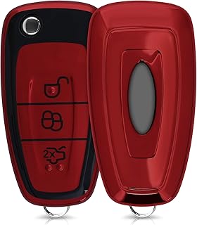 kwmobile Accessoire Clef de Voiture Compatible avec Ford 3-Bouton - Coque de Protection en Silicone Rouge Haute Brillance