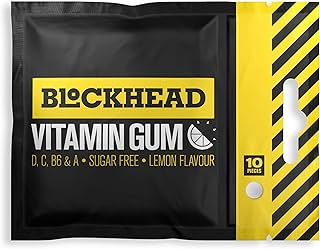 BLOCKHEAD Vitamin Gum Lemon 10 pieces | Vitamin chewing gum with Vitamins A, B6, C & D | Sugar-free | Calorie-free | Vegan