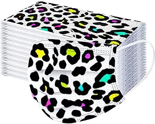 SmallYin 10-100Pcs Visage_Masque Adulte Jetable 3 Couches Non Tissé Anti-Poussière Respirant Face Scarf Bandanas avec Crochets D'oreille élastiques, Imprimé Léopard, pour Extérieur Mouvement Cyclisme