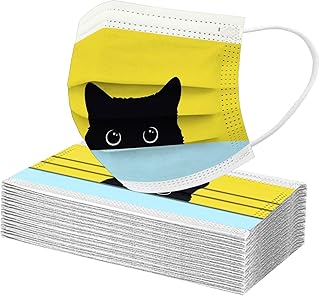 SmallYin 50Pcs Visage_Masque Adulte Jetable 3 Couches Non Tissé Anti-Poussière Respirant Face Scarf Bandanas avec Crochets D'oreille élastiques, Imprimé de Chat Mignon, Extérieur Mouvement Cyclisme