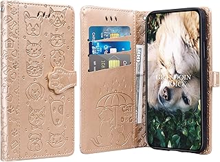 GrandoinChoice Coque pour Xiaomi Redmi 9, [Série Chat et Chien] Protection du Corps Entier Flip Cover Étui de Protection Housse en PU Cuir avec TPU Silicone Souple Case (Or)